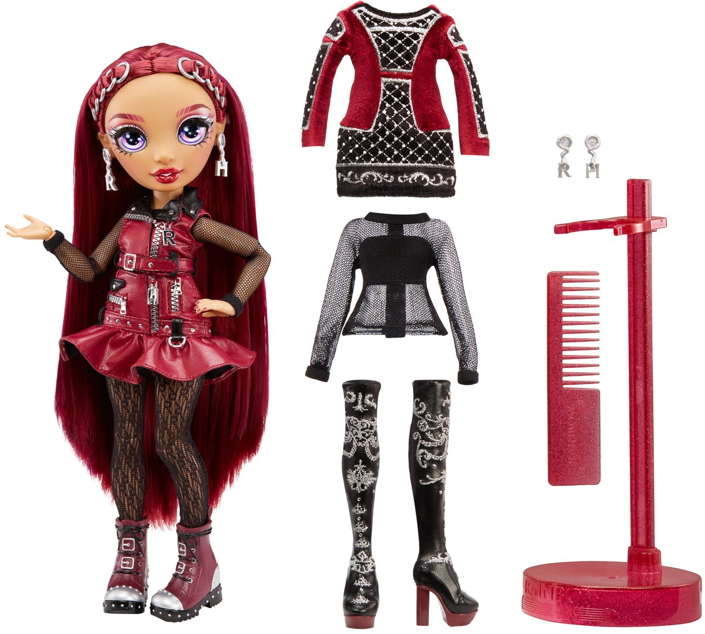 Rainbow High Набор игровой «Mila Berrymore»В данный момент этот товар отсутствует в продаже. Возможно, у нас найдется аналогичный или похожий товар здесь. Мила Берримор — куколка из 4 серии Rainbow High. Это коллекция из 6 разноцветных куколок, которая вышла весной 2022 года. Мила Берримор — экстравагантная красотка. Она обожает бордовый оттенок и очень удачно сочетает его с черным. У куклы длинные, почти до пят, волосы цвета спелой вишни, огромные фиолетовые глаза, яркий макияж в бордовых тонах. |