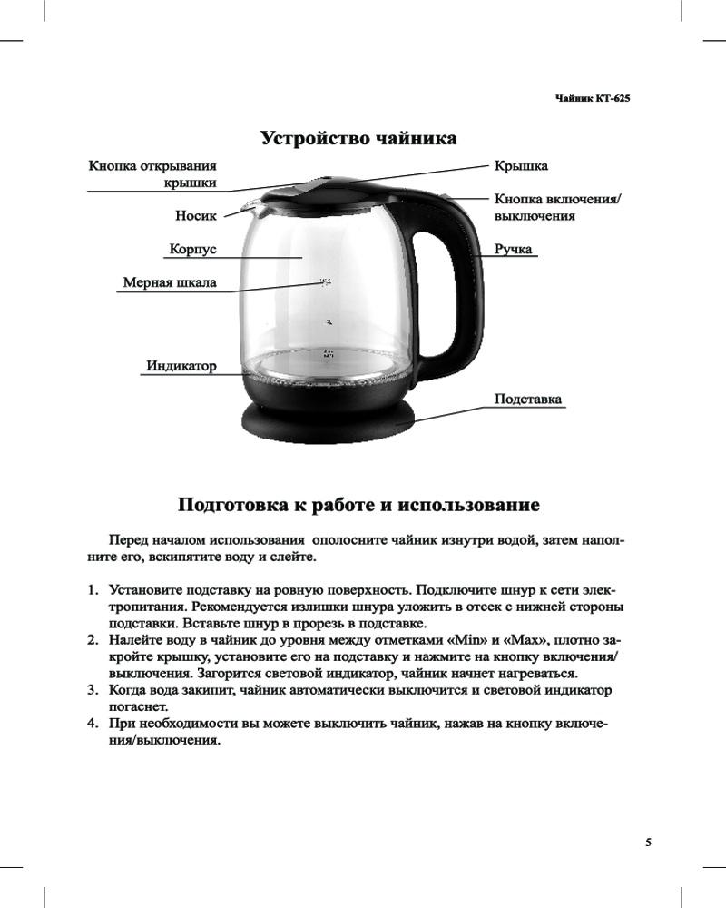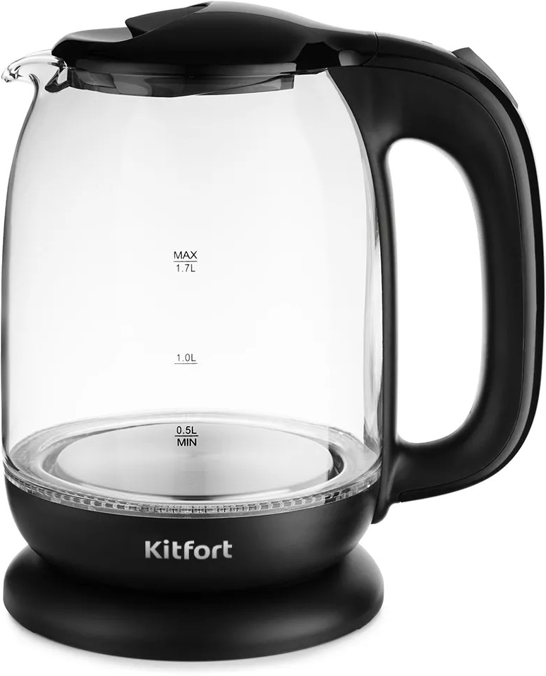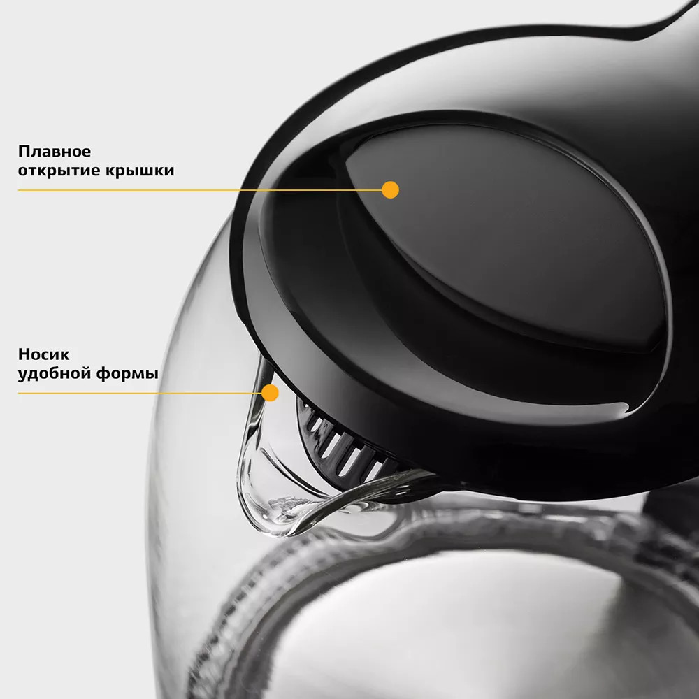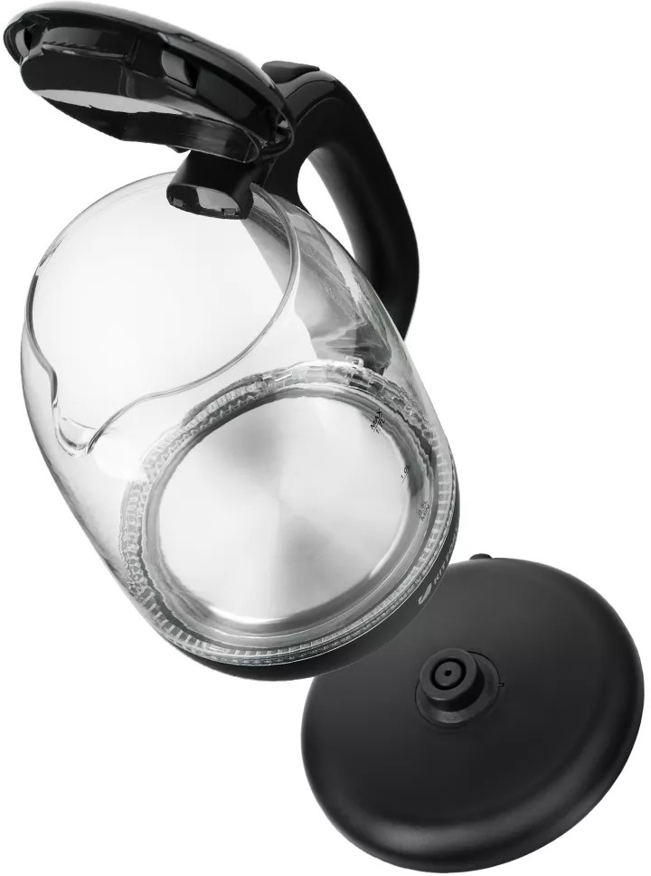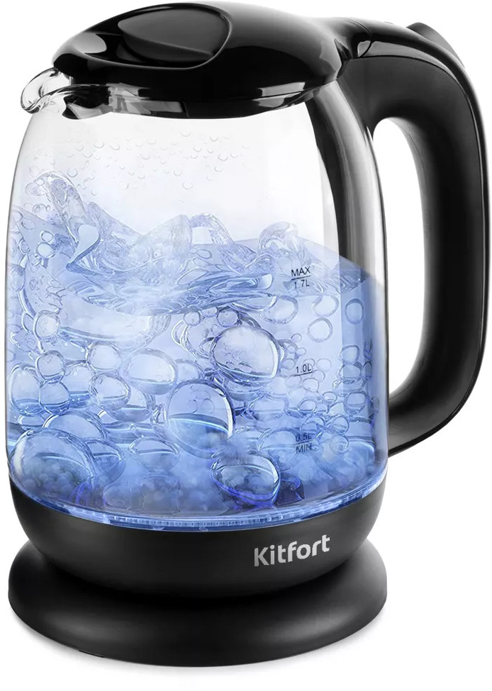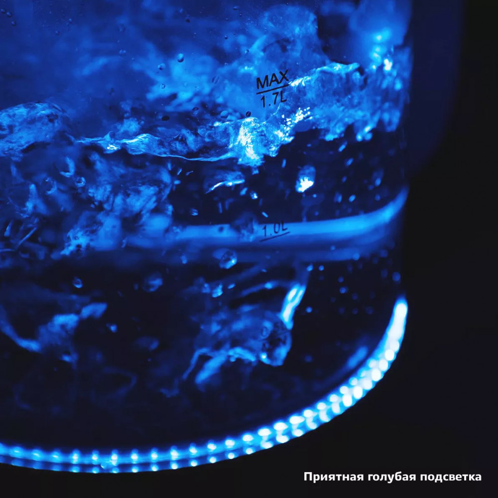 Прозрачный. Быстро и тихо закипает. Ярко светится.