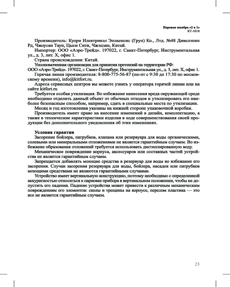 Kitfort Швабра паровая+1842