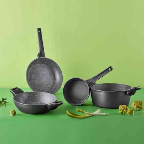 Эффект камня усиливает прочность и надежность материалов. Дно толстое и состоит из 7 слоев, с отличными антипригарными характеристиками. Perdini хорошо сочетается с проработкой рукояти, где имеется серая вставка, контрастирующая с черным бакелитом, из которого она состоит. Логотип расположен на плоской поверхности его верхней части, что облегчает захват и обеспечивает надежный захват.