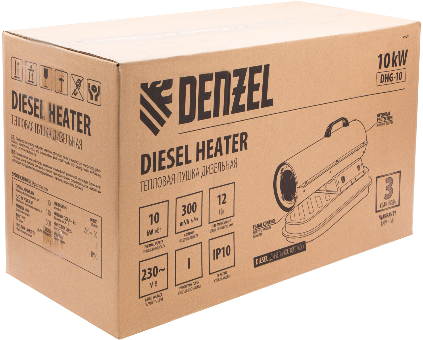 💳 Оплатить за товар можно при получении 🇰🇿 Есть бесплатная доставка по Казахстану от 1 дня 🎁 Копите бонусы с каждой покупки Дизельная тепловая пушка Denzel DHG-10 мощностью 10 кВт и производительностью 300 куб. м/ч предназначена для прямого нагрева воздуха в цехах, ангарах, хранилищах и других нежилых помещениях с хорошей вентиляцией. Максимальная площадь обогрева составляет 100 кв. м. Пушка служит эффективным источником тепла в полярных экспедициях. Пригодится также на строительной площадке для прогрева бетона, просушки стен и разморозки траншей. Для заправки может использоваться любое дизельное топливо: летнее, зимнее и арктическое. |