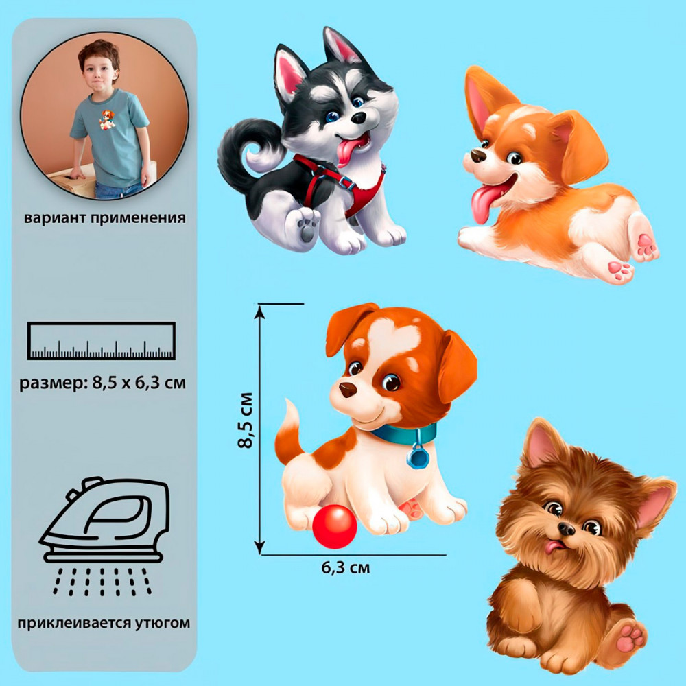 Арт Узор Набор термотрансферов «Забавные щенята»-20% +17 яркая наклейка прозрачный лист прорезиновые наклейки целые наклейки
