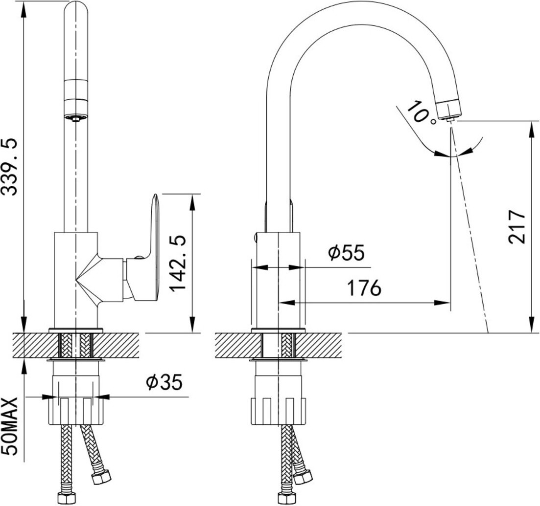 Смеситель для кухни Cuba в трендовом оттенке сатин с каналом для фильтрованной воды представляет уникальную технологию управления фильтрованной водой, которая практически не имеет аналогов. Теперь, чтобы налить стакан чистой воды, не нужна вторая ручка, — достаточно просто повернуть основную ручку в закрытом состоянии. Встроенный отдельный канал для фильтрованной воды позволяет, при подключении к любому фильтру, наслаждаться чистой питьевой водой прямо из смесителя. Нет необходимости устанавливать отдельный смеситель и сверлить под него отверстие.