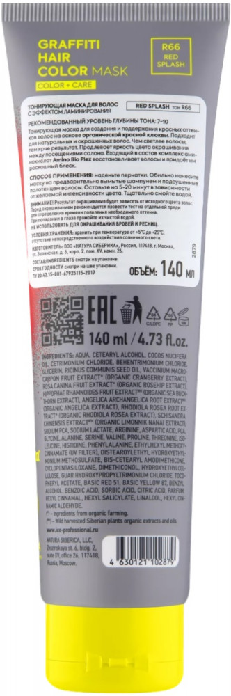 Natura Siberica Маска для волос тонирующая «Graffiti hair», оттенок R66 Red Splash