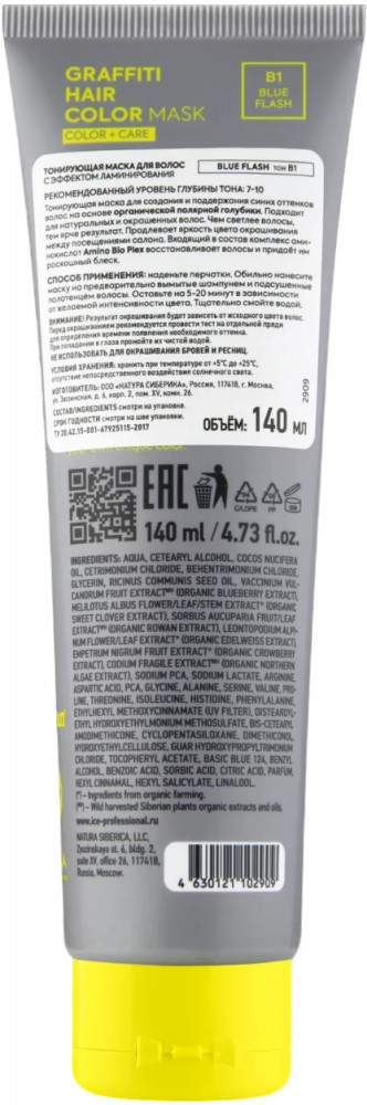 Natura Siberica Маска для волос тонирующая «Graffiti hair», оттенок B1 Blue Flash