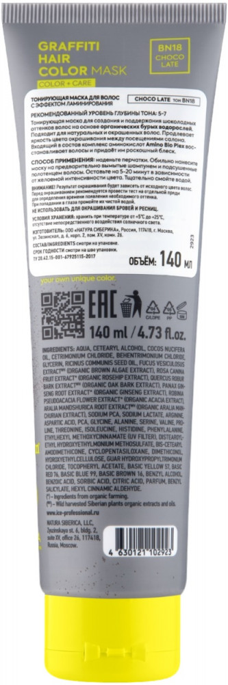 Natura Siberica Маска для волос тонирующая «Graffiti hair», оттенок BN18 Choco Late