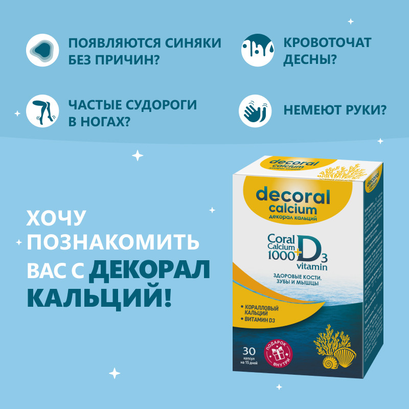 Sole Pharma Health Care Капсулы «Декорал кальций»В данный момент этот товар отсутствует в продаже. Возможно, у нас найдется аналогичный или похожий товар здесь. Декорал Кальций — это кальций, добытый из кораллов с добавлением грамотной дозировки витамина Д3. Особенность Декорал Кальция — это природное происхождение кальция. Этот элемент, еще называют королем белоснежной улыбки, является строительным материалом костной ткани и скелета, может предотвратить кариес. Кальций не заменяется в человеческом организме другими соединениями, и при его отсутствии возникают сбои в метаболизме. Первыми на недостаток реагируют нервная и кровеносная системы. Исследования показывают, что коралловый кальций может защищать от кариеса, реминерализируя эмаль ваших зубов. Безусловно, он так же укрепляет кости и хрящи всего организма, восстанавливая их после травм и ушибов. |