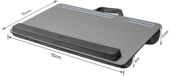 Подставка Evolution LS203 совместима с ноутбуками, максимальный допустимый размер диагонали экрана которых до 17 дюймов. Подставка долговечна: она изготовлена из МДФ и покрыта износостойкой и нескользящей экокожей PU. Накладки исключают скольжение ноутбука и защищают его корпус от повреждений. Подставка компактна: она имеет размеры 550×350×65 мм. Конструкция изделия способствует экономии свободного пространства: можно разместить любые компактные предметы, например — смартфон, планшет или зарядное устройство.
