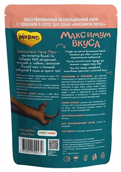 Мнямс Корм для собак «Томленая говядина в соусе»
