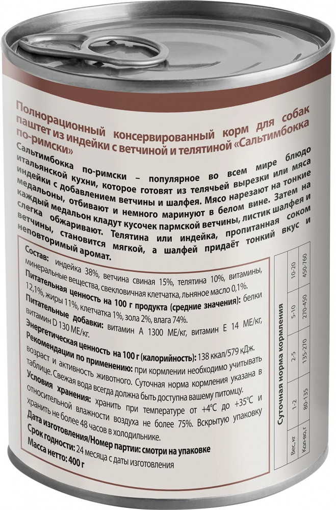 Мнямс Консерва для собак «Сальтимбокка по-римски»