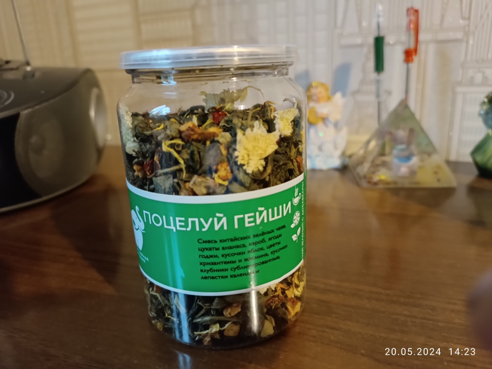 Хорошая упаковка чая. Здесь есть и кусочки яблок и жасмин , и клубника. На банке есть двойная крышка. Очень понравилось, спасибо команде Flip и конечно же доставке.