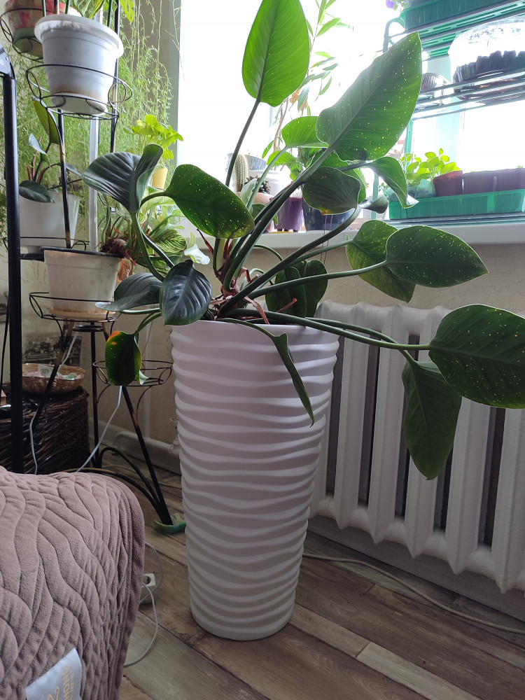 пересадила Зами,смотрится в кашпо отлично,цвет темный беж под интерьер