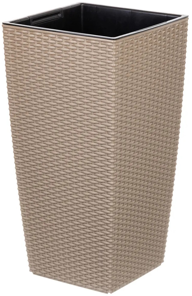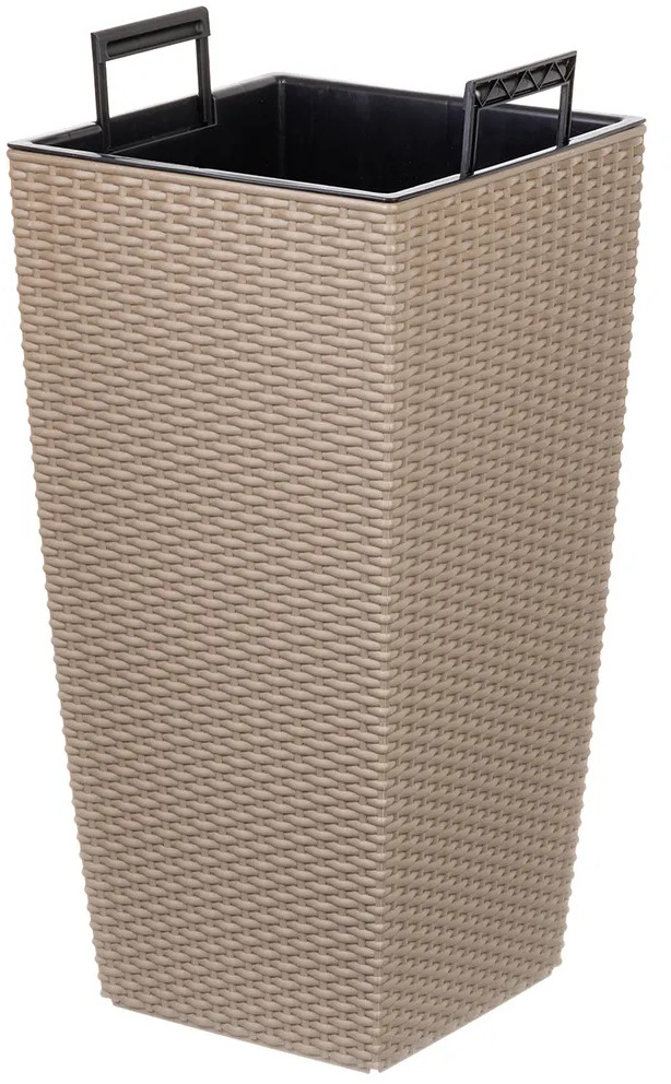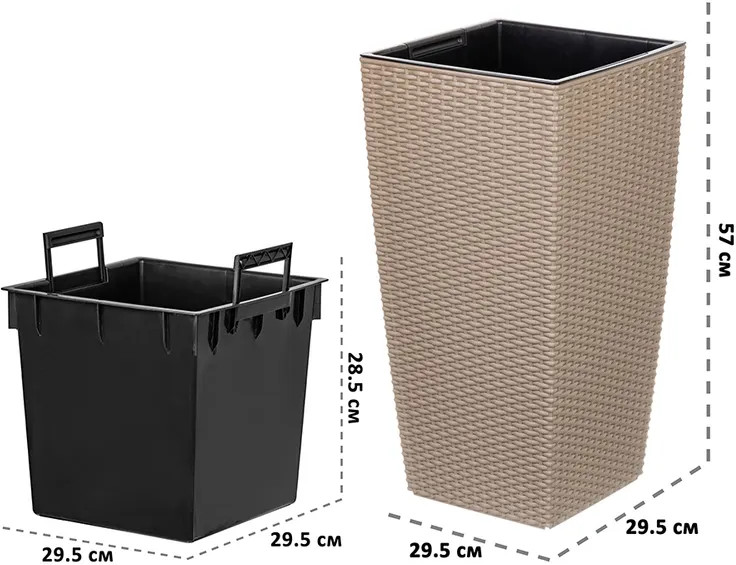 очень высокий и сьемная чашка тоже глубокая.15 кг земли надо для пасадки.качество кашпо отличное,цвет бомбический.