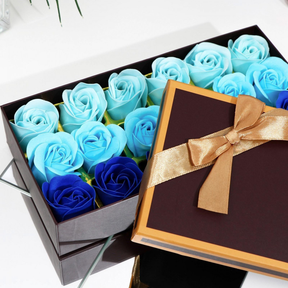 красивый знак внимания, коробка большая, все мыльные розы целые, смотрится нежно