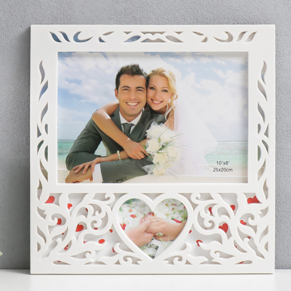 Рамка очень красивая! Смотрится дорого. Я думала нужно вставить только фото размером 20*25, но нет. Это одно фото. И жених с невестой, и внизу сердечки. Можно конечно обрезать и вставить фото только 20*25