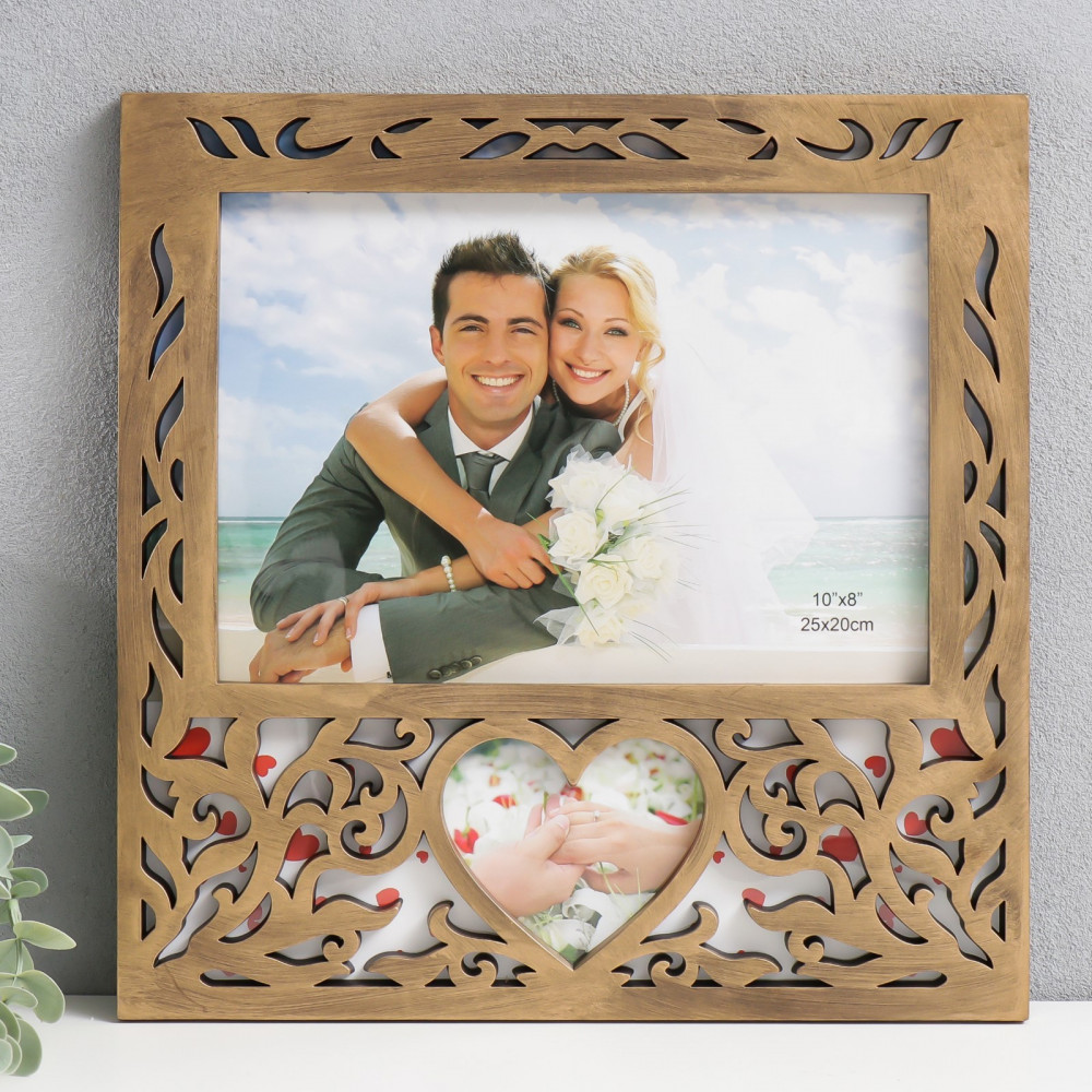 Рамка очень красивая! Смотрится дорого. Я думала нужно вставить только фото размером 20*25, но нет. Это одно фото. И жених с невестой, и внизу сердечки. Можно конечно обрезать и вставить фото только 20*25
