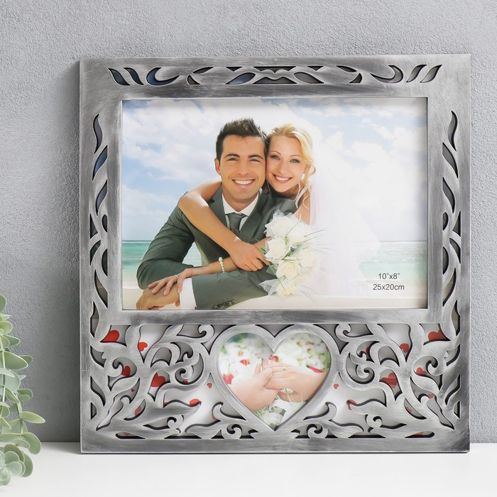 Рамка очень красивая! Смотрится дорого. Я думала нужно вставить только фото размером 20*25, но нет. Это одно фото. И жених с невестой, и внизу сердечки. Можно конечно обрезать и вставить фото только 20*25