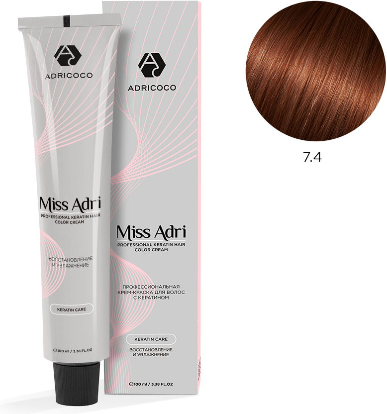 Adricoco Крем-краска для волос профессиональная, оттенок 7.4 Блонд медный