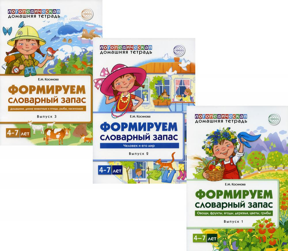 Домашние логопедические тетради. Формируем словарный запас. Комплект из 3 книг+209