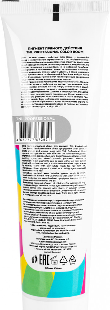 TNL Professional Пигмент прямого действия для волос «Color boom», оттенок Серый