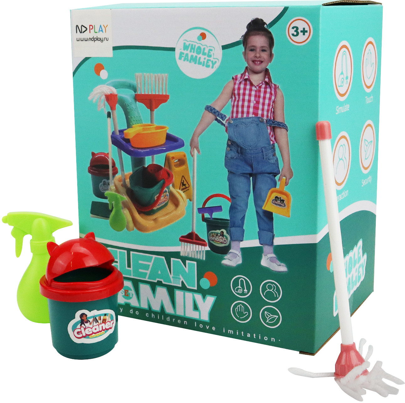 Набор состоит из самых необходимых предметов для игры в уборку: