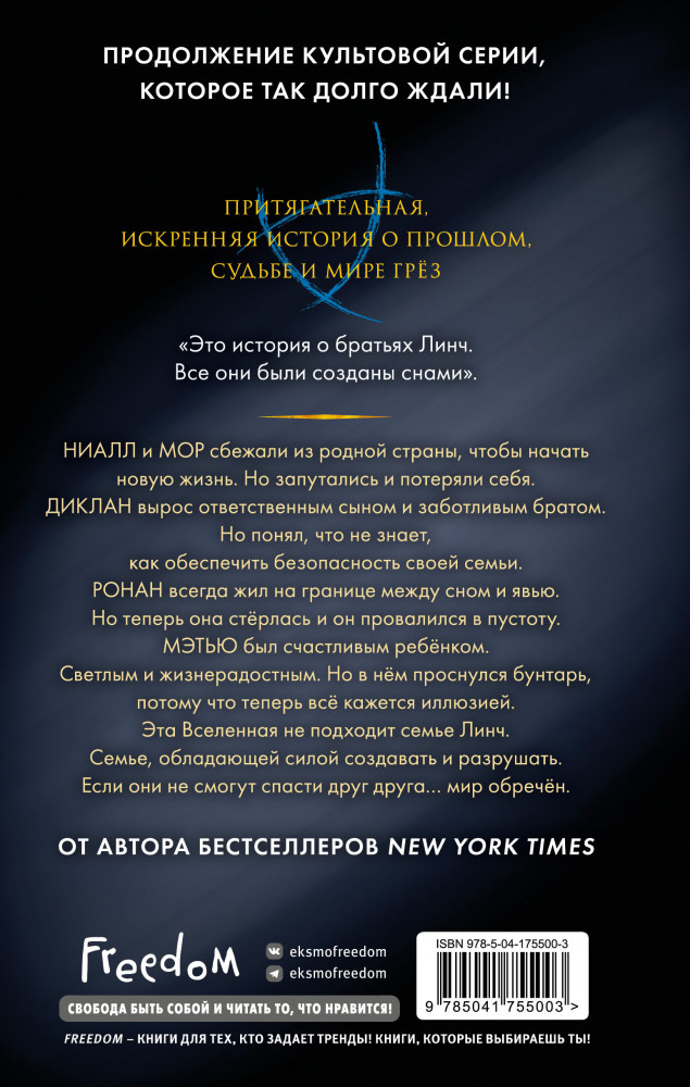 В данный момент этот товар отсутствует в продаже. Возможно, у нас найдется аналогичный или похожий товар здесь. Серия: Young Adult. Бестселлер Мэгги Стивотер Величественное завершение трилогии Мэгги Стивотер «Сновидец»!