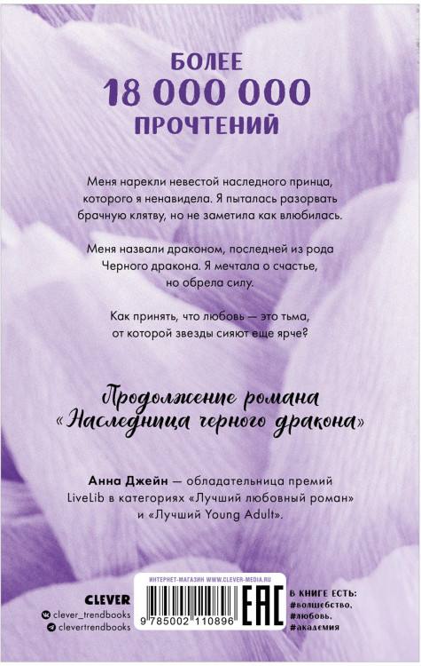 💳 Оплатить за товар можно при получении 🇰🇿 Есть бесплатная доставка по Казахстану от 1 дня 🎁 Копите бонусы с каждой покупки Серия: #trendbooks Меня нарекли невестой наследного принца, которого я ненавидела. Я пыталась разорвать брачную клятву, но не заметила как влюбилась. Меня назвали драконом, последней из рода Черного дракона. Я мечтала о счастье, но обрела силу. Как принять, что любовь — это тьма, от которой звезды сияют еще ярче? |