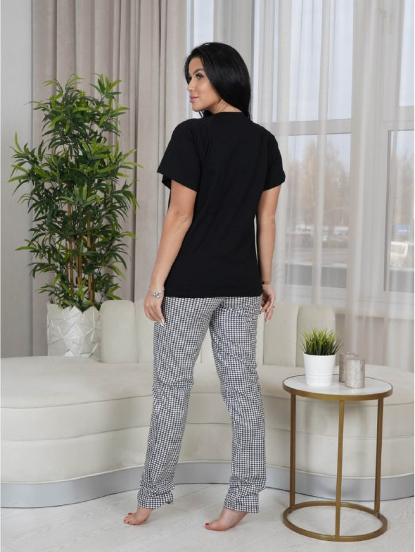 Хлопковый костюм с брюками — это классическая, лучшая и удобная домашняя одежда, неотъемлемая часть женского гардероба. Футболка может стать дополнением для других брюк или шортиков — экспериментируйте. Для максимально комфортного ночного сна ничто не сравнится с трикотажной пижамой. Мягкая на ощупь ткань в сочетании с дышащими материалами обеспечивает спокойный отдых. Современный, сочный свежий образ не оставит равнодушным ни одну модницу. Костюм для дома со штанами выполнен из хлопка, в котором комфортно зимой, осенью, теплой весной и летом. В зимнее время в ней уютно почитать книгу или посидеть за чашкой чая с родными, накинув на плечи теплый плед или вязанную кофту на пуговицах. Прекрасная альтернатива кружевной ночной сорочке или вискозному, велюровому бархатному халату с кружевом. По качеству, красоте, комфорту и удобству хлопковая пижама не уступает шелковой, атласной. Подойдет для красивой фотосессий или пригодится на летнем отдыхе.