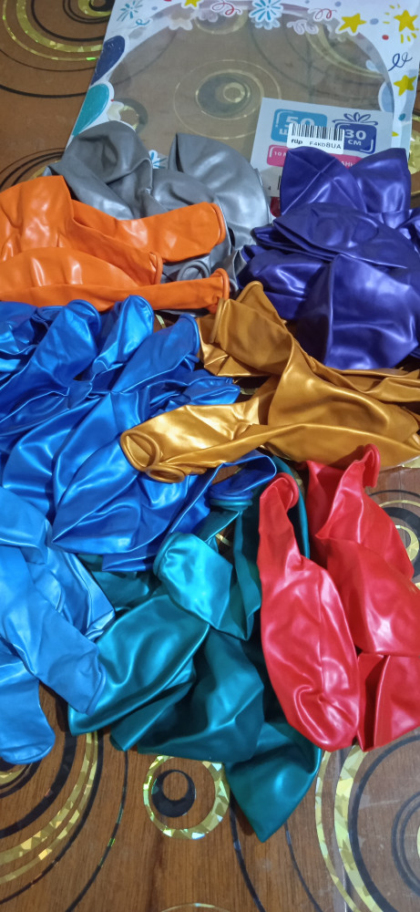 неплохие шарики, легко надуваются и завязываются на узелок. Но цветов было 8 ( не было светло -зеленого и розового) и распределены цвета неравномерно. больше всех было синих, фиолетовых и голубых 11-10-9 шт, оранжевых вообще 3, красных 5. Один был дырявый.