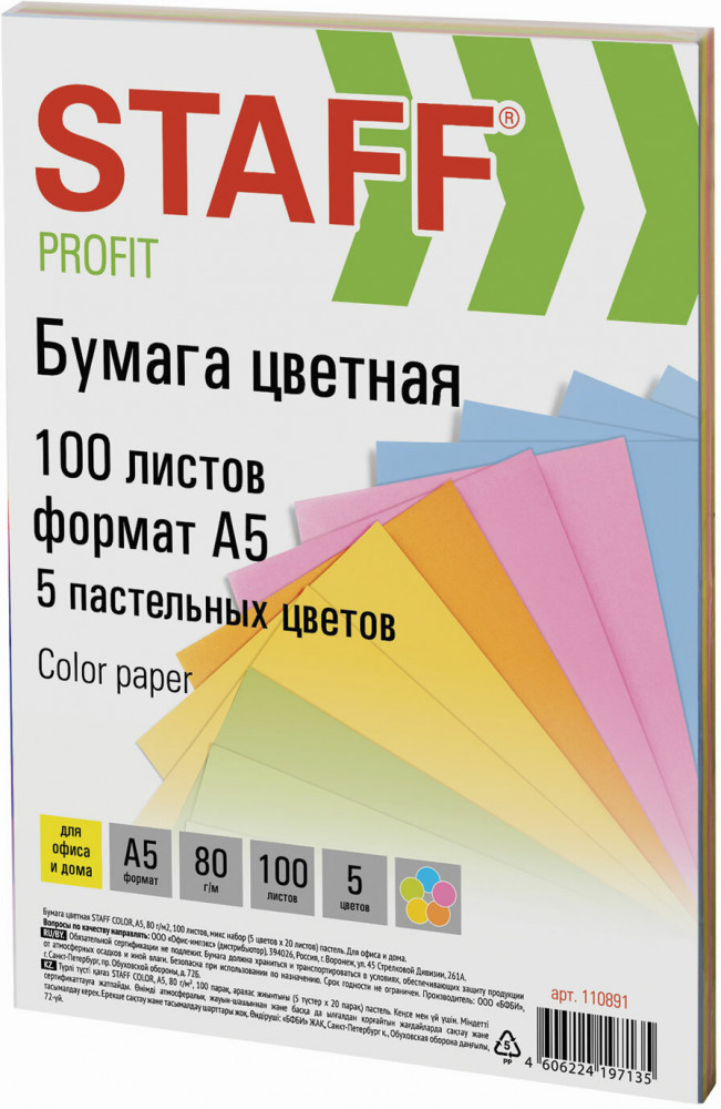💳 Оплатить за товар можно при получении 🇰🇿 Есть бесплатная доставка по Казахстану от 1 дня 🎁 Копите бонусы с каждой покупки Серия: Profit Упакована в пачки по 100 листов формата А4. В наборе 5 цветов по 20 листов пастельных тонов: розовый, желтый, салатовый, оранжевый, голубой. Листы бумаги плотностью 80 г/м² подходят для письма вручную. |