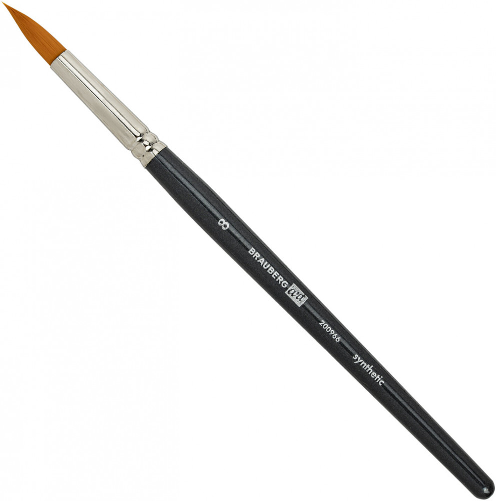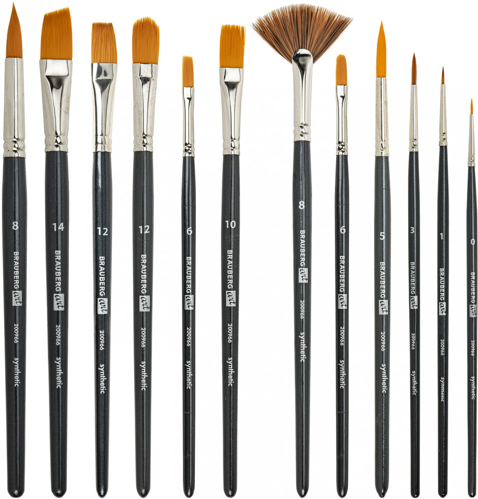 Кисти изготовлены с применением синтетики. Отличаются универсальностью в использовании, обусловленной упругостью ворса и прекрасными впитывающими свойствами пучка. Короткая ручка из древесины покрыта лаком, что защищает ее от воздействия красок и влаги. Форма пучка — круглая № 0, 1, 3, 5, 8; плоская № 6, 10, 12; скошенная № 14; овальная № 6, 12; веерная № 8. Номер кисти соответствует реальной ширине пучка в миллиметрах. Упаковка — текстильный пенал в ОПП-пакете.