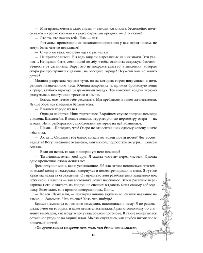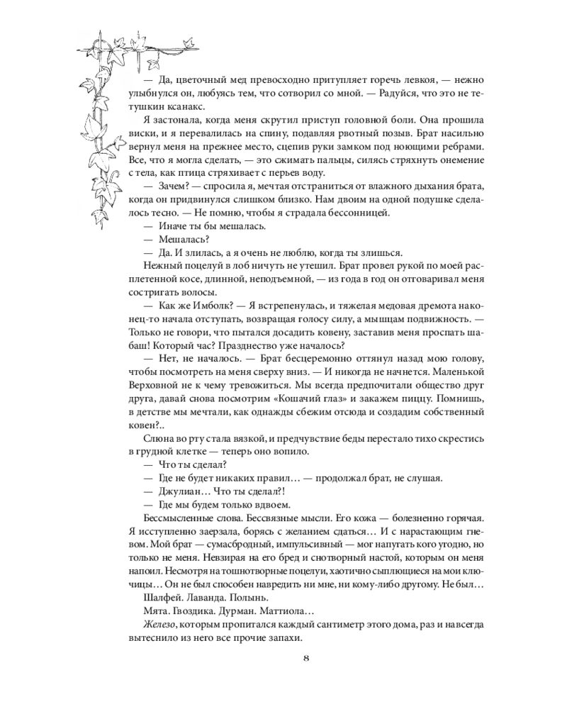Пожалуй это одна из немногих книг, над которой я и смеялась, и плакала. Вот настолько она прекрасна. Все три книги наполнены ароматами, что позволяет полностью погрузиться в книгу. Про оформление книги можно говорить часами. Безумно красивое сочетание цветов на обложке, а иллюстрации внутри 😍. Ни капли не пожалела о том, что приобрела ковен! Отдельное спасибо Анастасии Гор!!