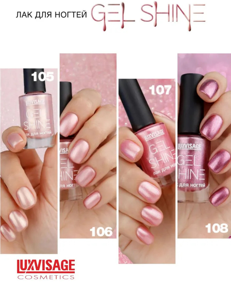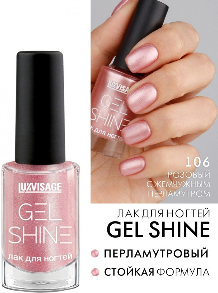 LuxVisage Лак для ногтей «Gel Shine», оттенок 106 Розовый с жемчужным перламутром