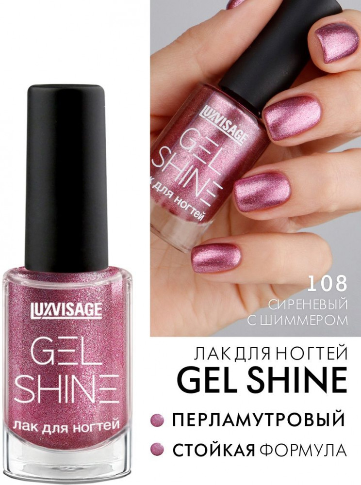 LuxVisage Лак для ногтей «Gel Shine», оттенок 108 Сиреневый с шиммером