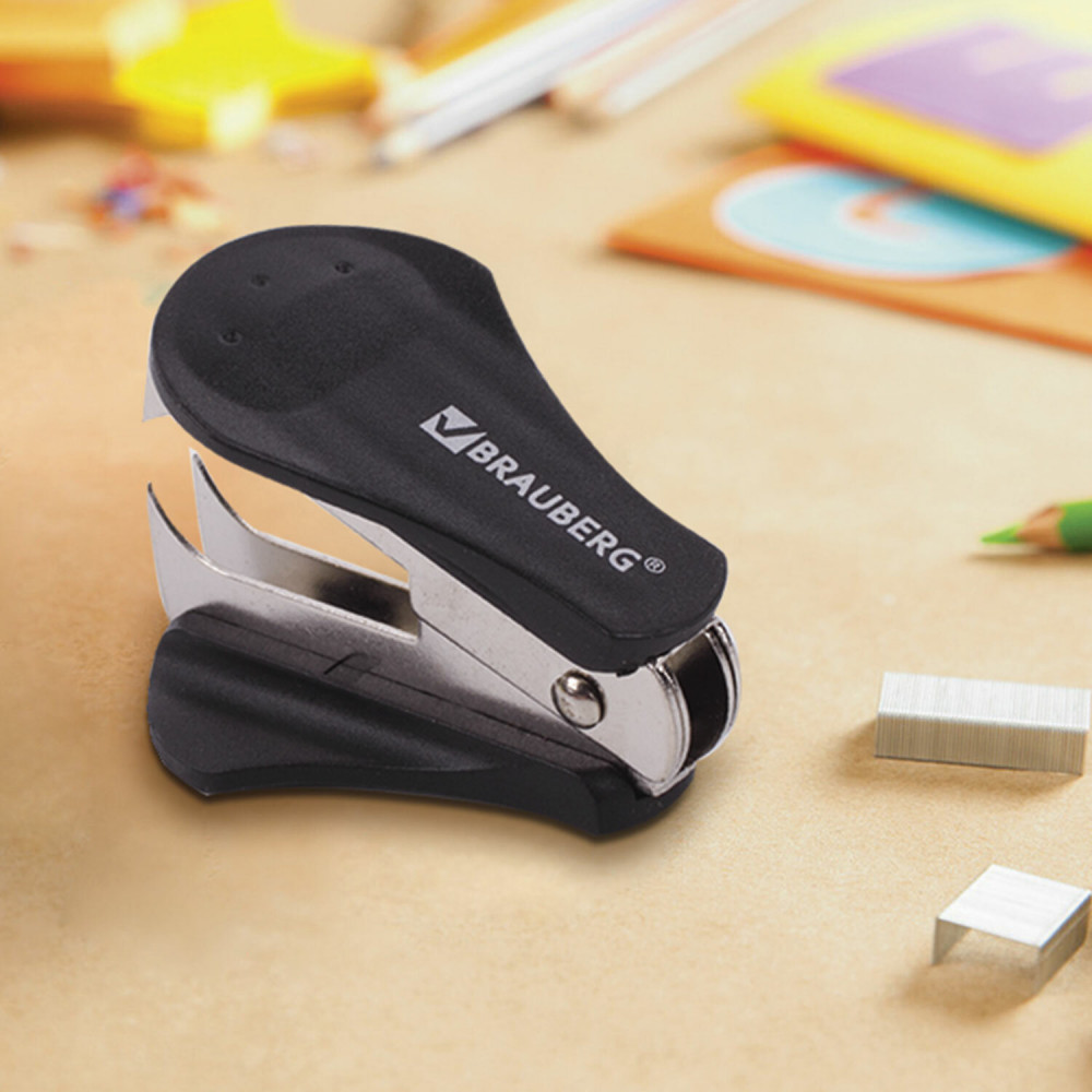 Серия: Original Антистеплер «Original» предназначен для удаления скоб № 10 и № 24/6. Рабочий механизм антистеплера выполнен из металла, корпус — из пластика черного цвета. Позволяет разжать закрепленные скобы, не нанося повреждений ни материалу, ни кончикам пальцев. |
