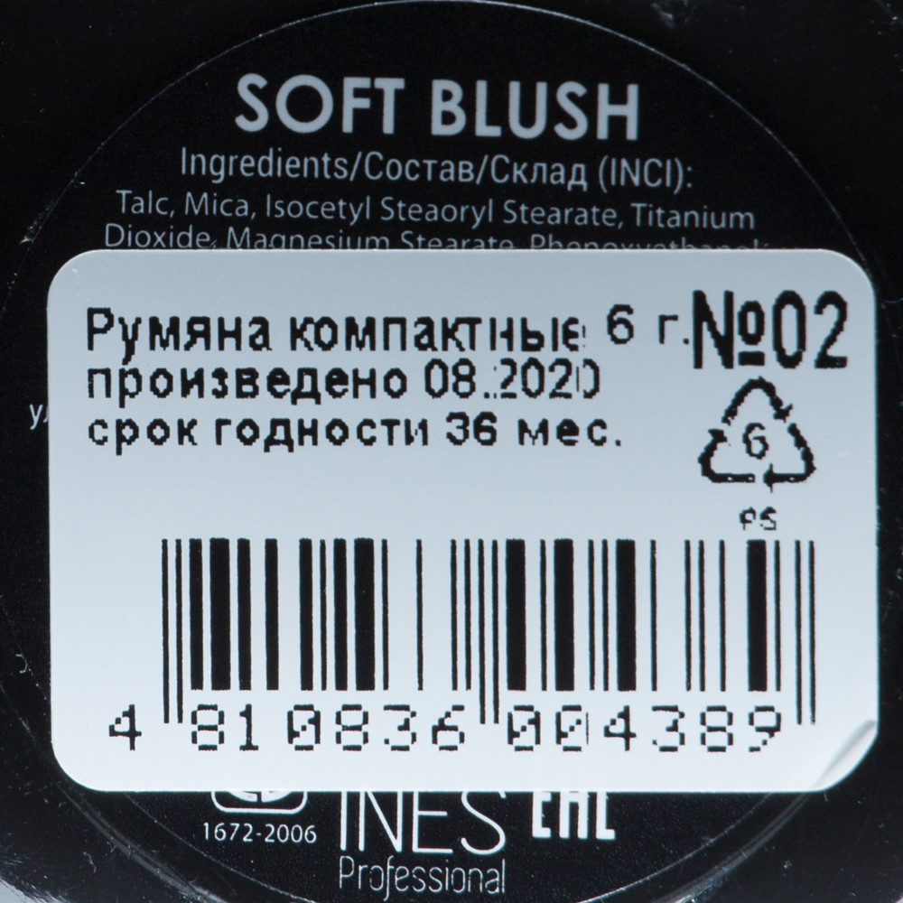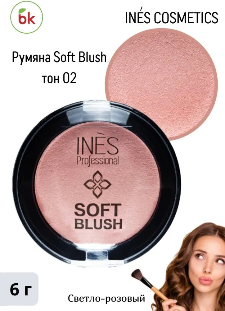 Ines Cosmetics Румяна «Soft Blush», оттенок 02 Светло-розовый