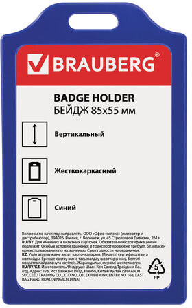 Brauberg Бейдж вертикальный жесткокаркасный