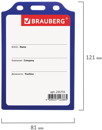 Brauberg Бейдж вертикальный жесткокаркасный-20% +5