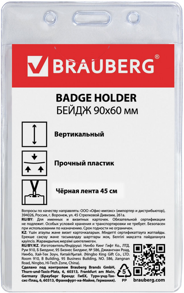 Brauberg Бейдж вертикальный на ленте