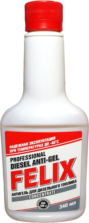 Professional disel anti-gel «Felix» — это депрессорная присадка нового поколения, предназначенная для добавления в дизельное топливо с целью стабилизации работы двигателя в широком диапазоне климатических условий. Антигель «Felix» воздействует на углеводороды парафиновой группы и растворенную в топливе воду, значительно снижая температуру фильтруемости и замерзания дизельного топлива.