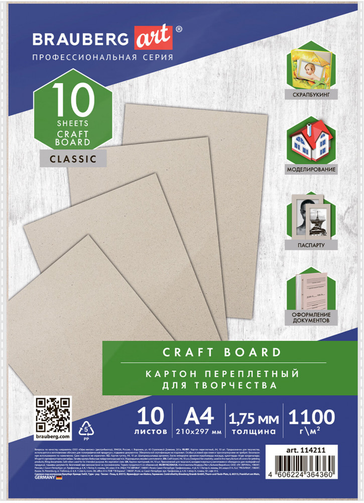 Brauberg Набор картона переплетного-20% +50 плотный картон не расслаивается ровные края держит гипс