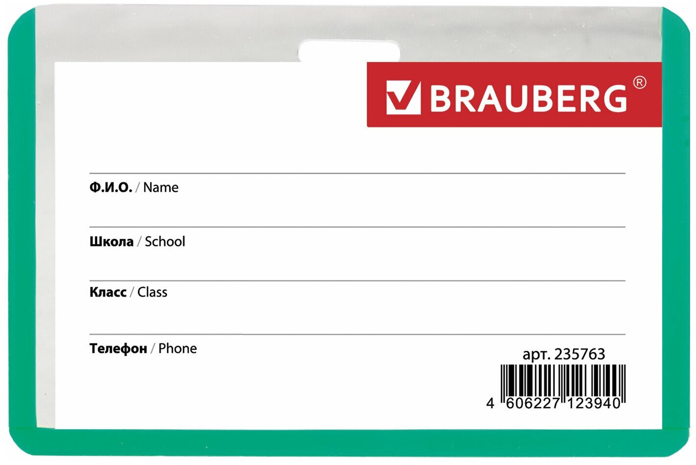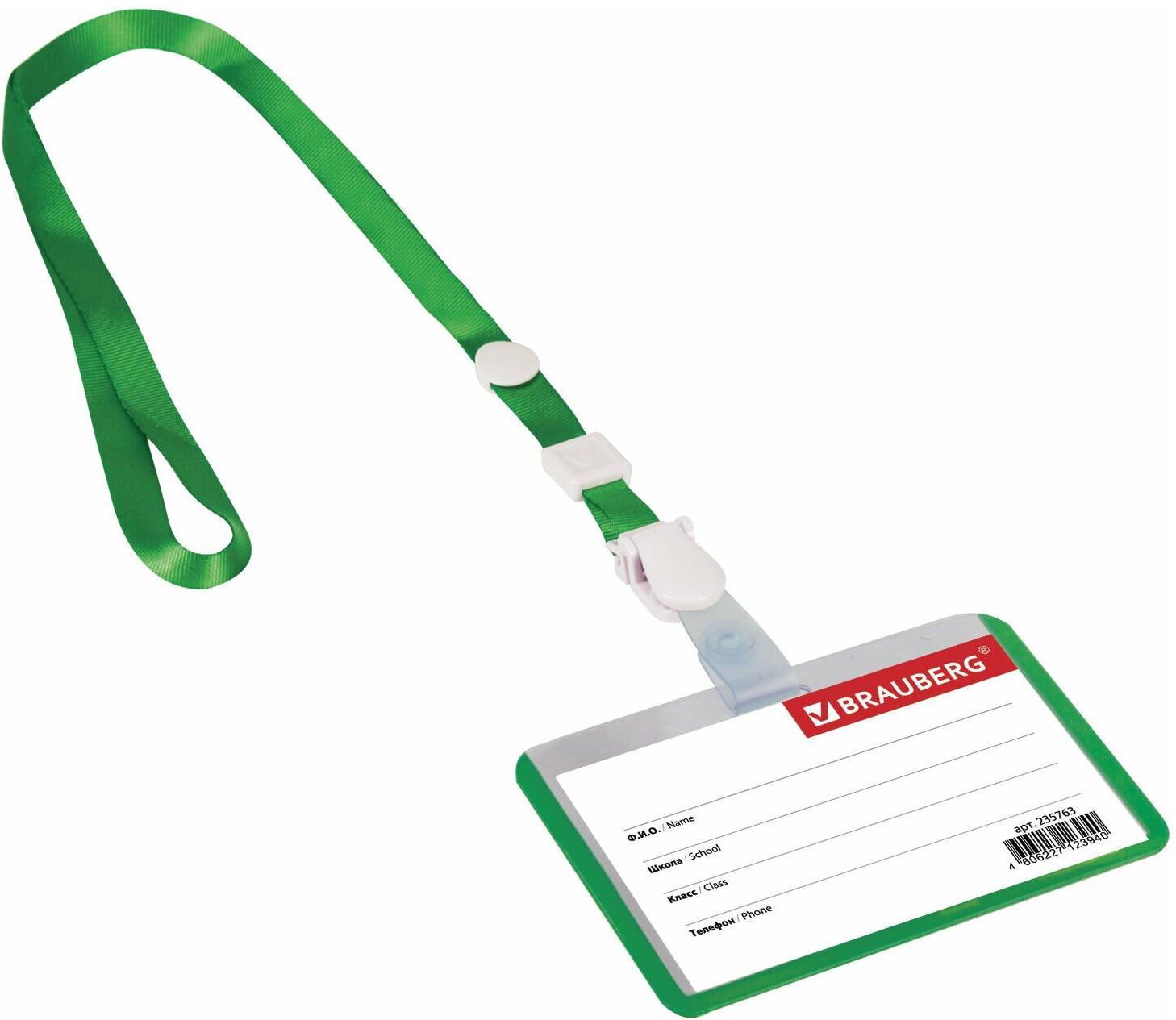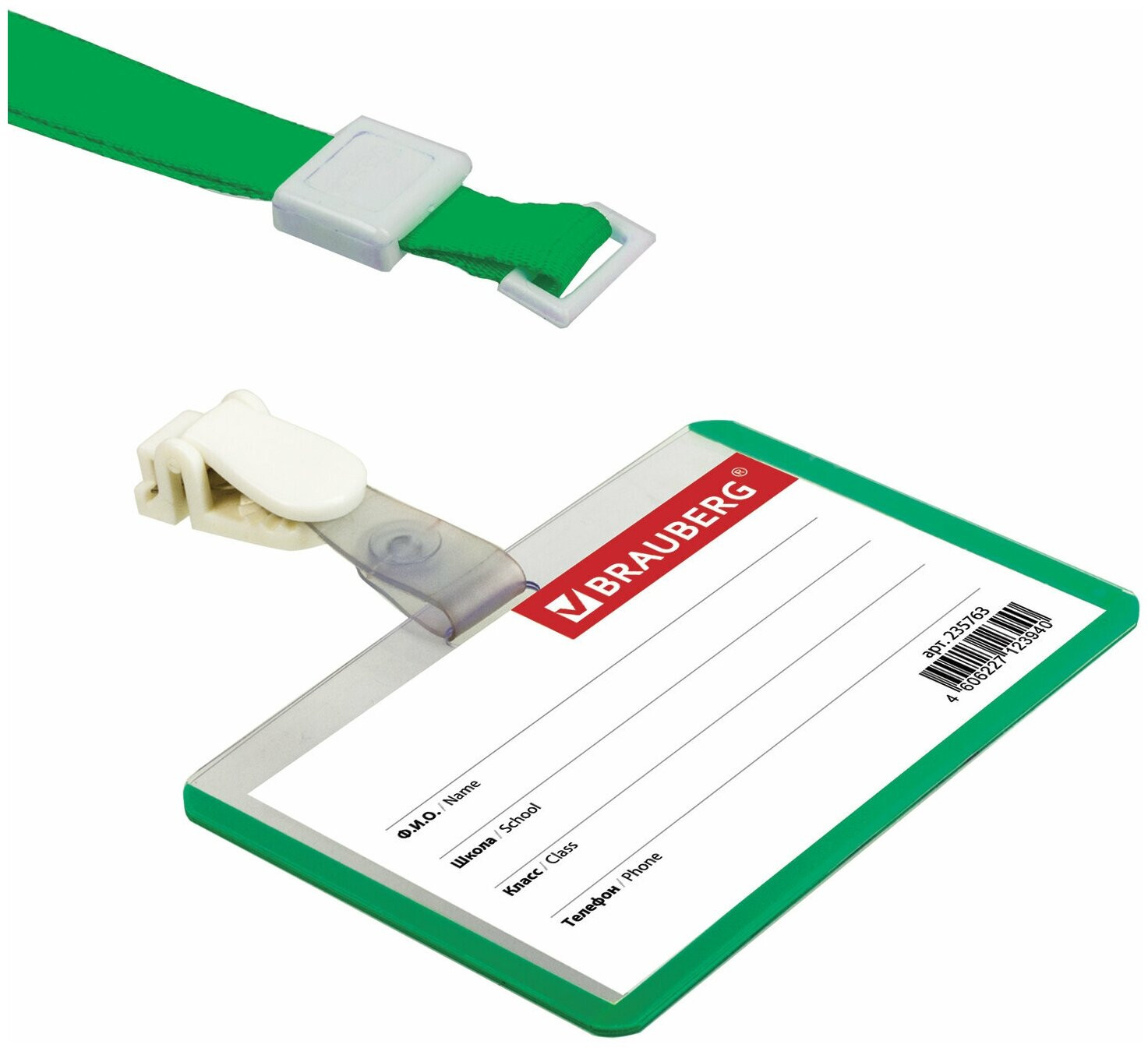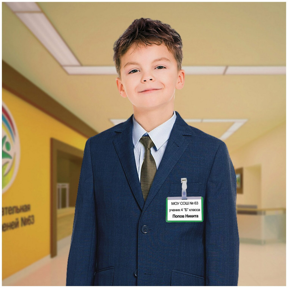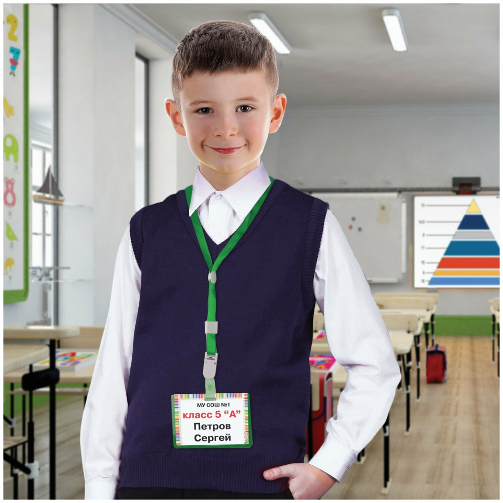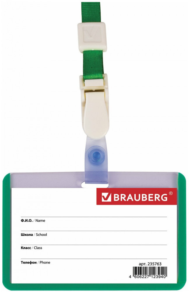 Brauberg Бейдж школьника горизонтальный на ленте со съемным клипом
