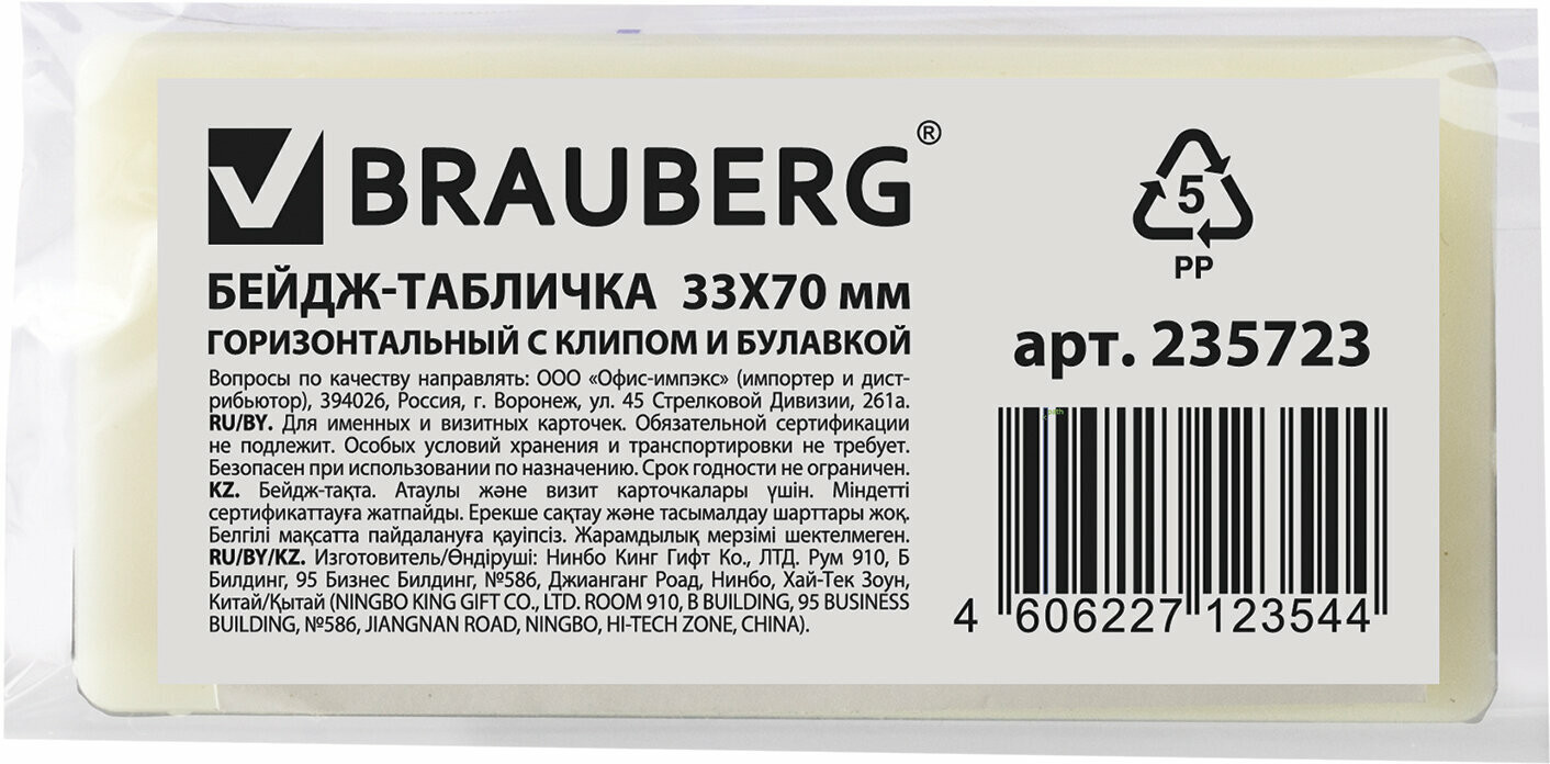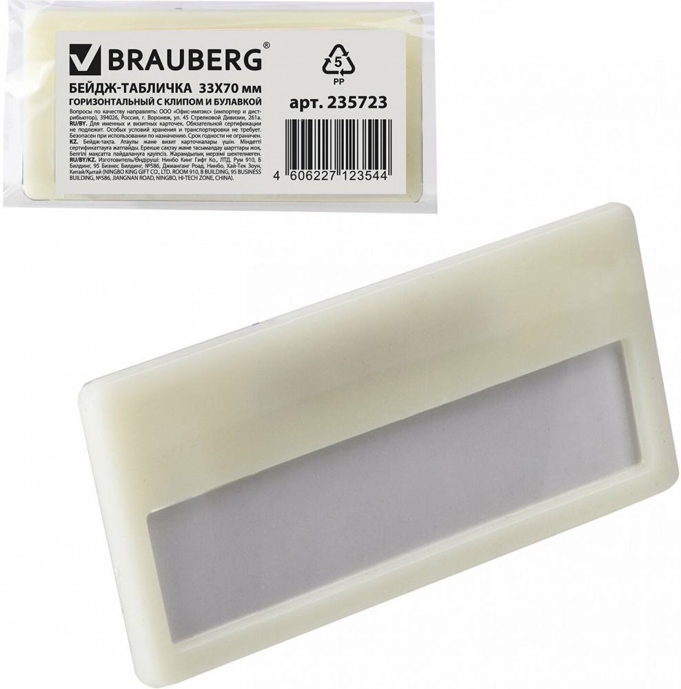 Brauberg Бейдж-табличка горизонтальный-20% +5