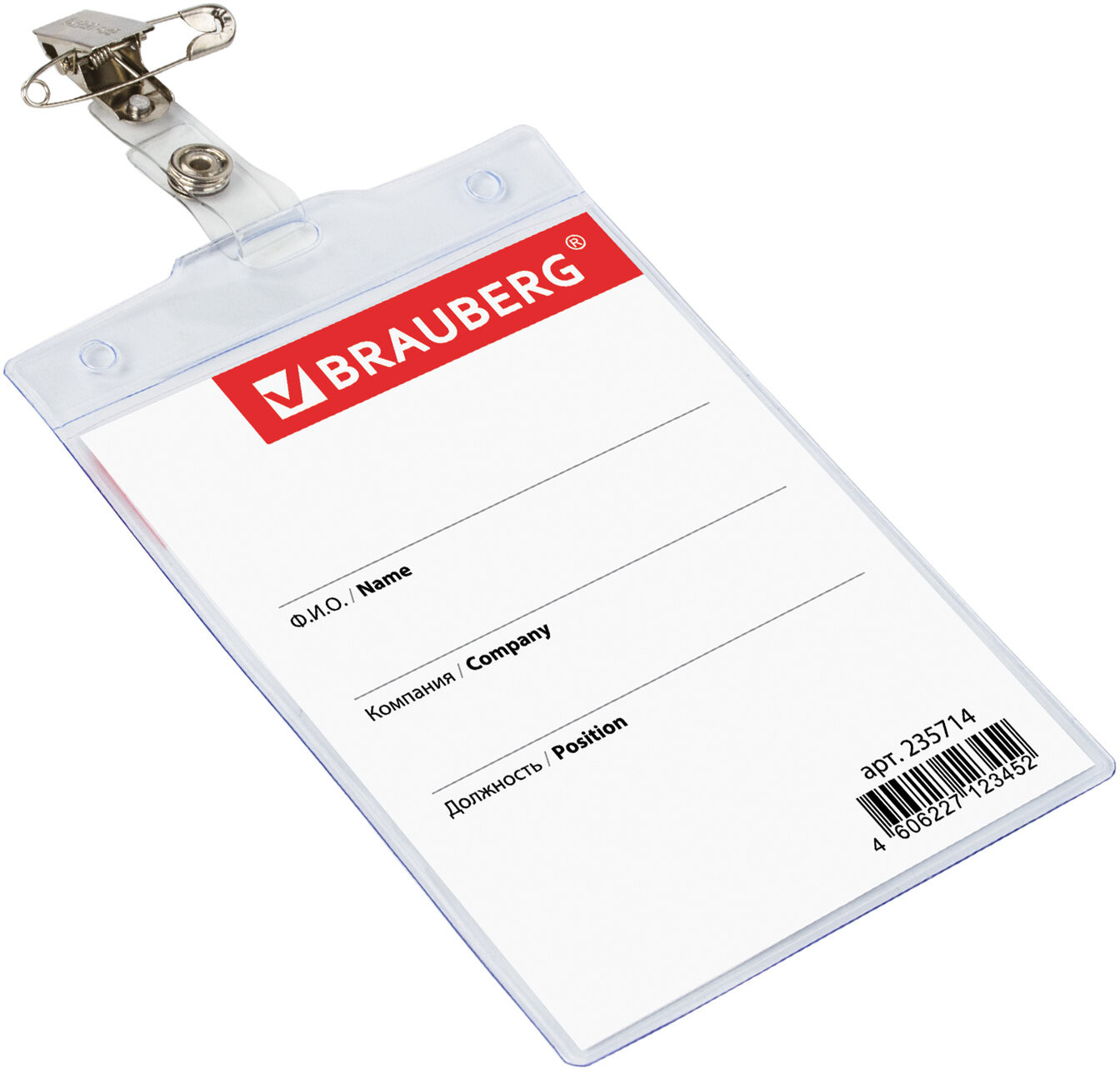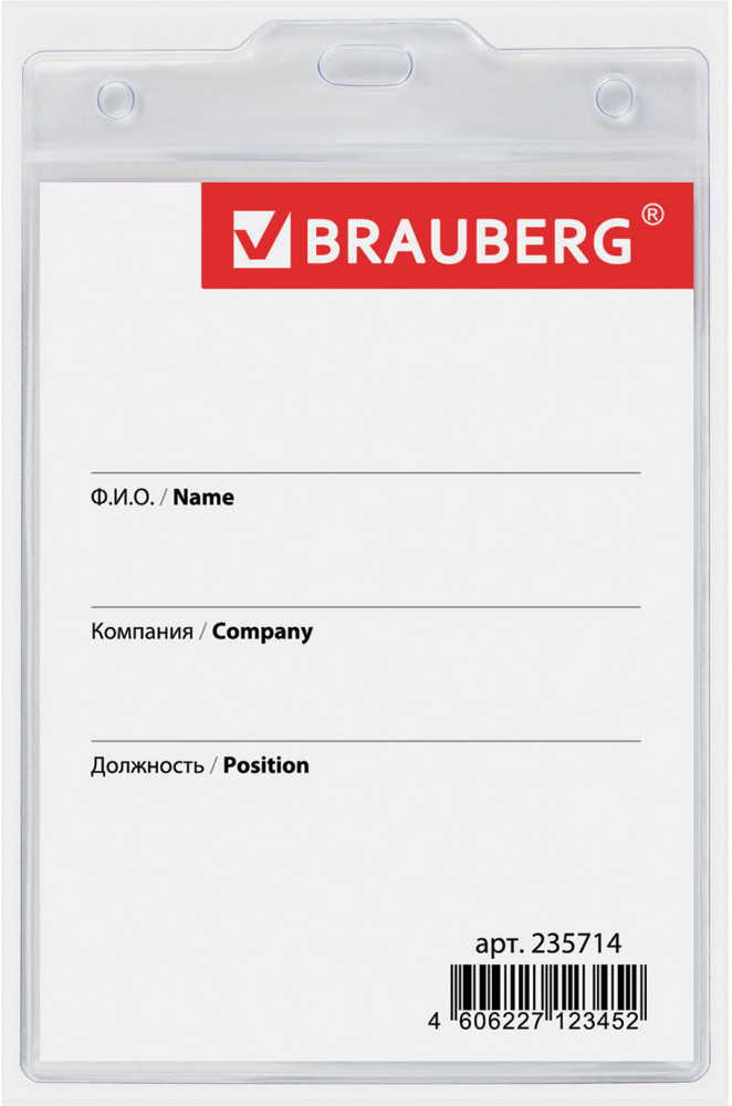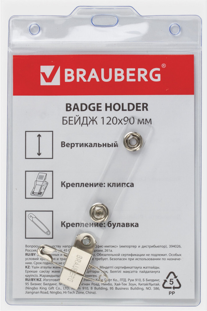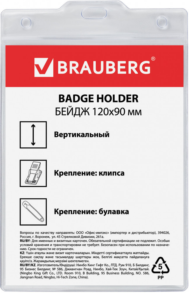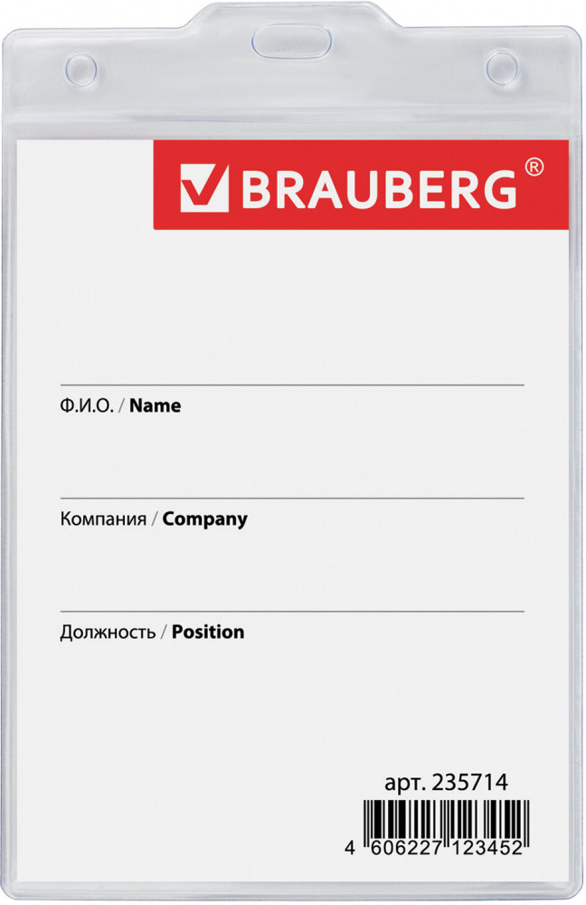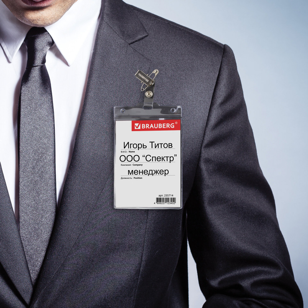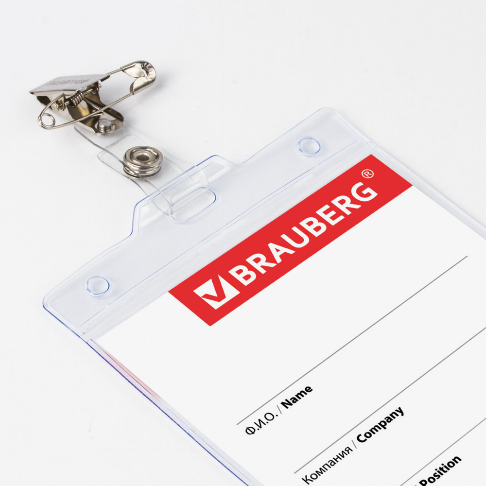 Brauberg Бейдж вертикальный большой с клипсой и булавкой-30% +13