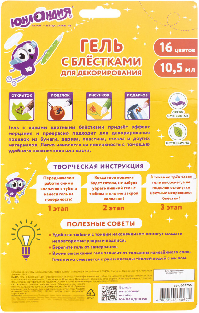 💳 Оплатить за товар можно при получении 🇰🇿 Есть бесплатная доставка по Казахстану от 1 дня 🎁 Копите бонусы с каждой покупки Гель с блёстками «Юнландия» — это блестящие наборы для творчества и украшения открыток, поделок, рисунков и подарков. Удобный наконечник с дозатором позволяет легко наносить гель на любую поверхность. |