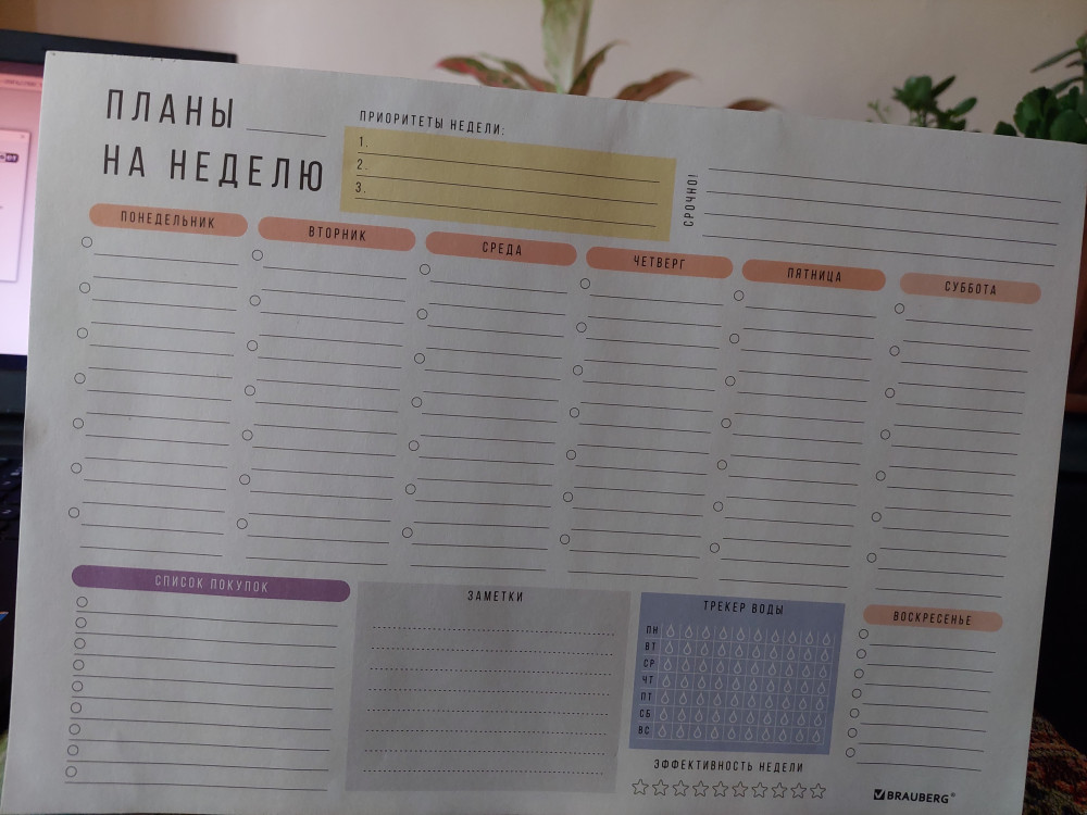 Отличный планер! Один из немногих, который действительно использую в планировании работы. Качественная бумага, ничего лишнего