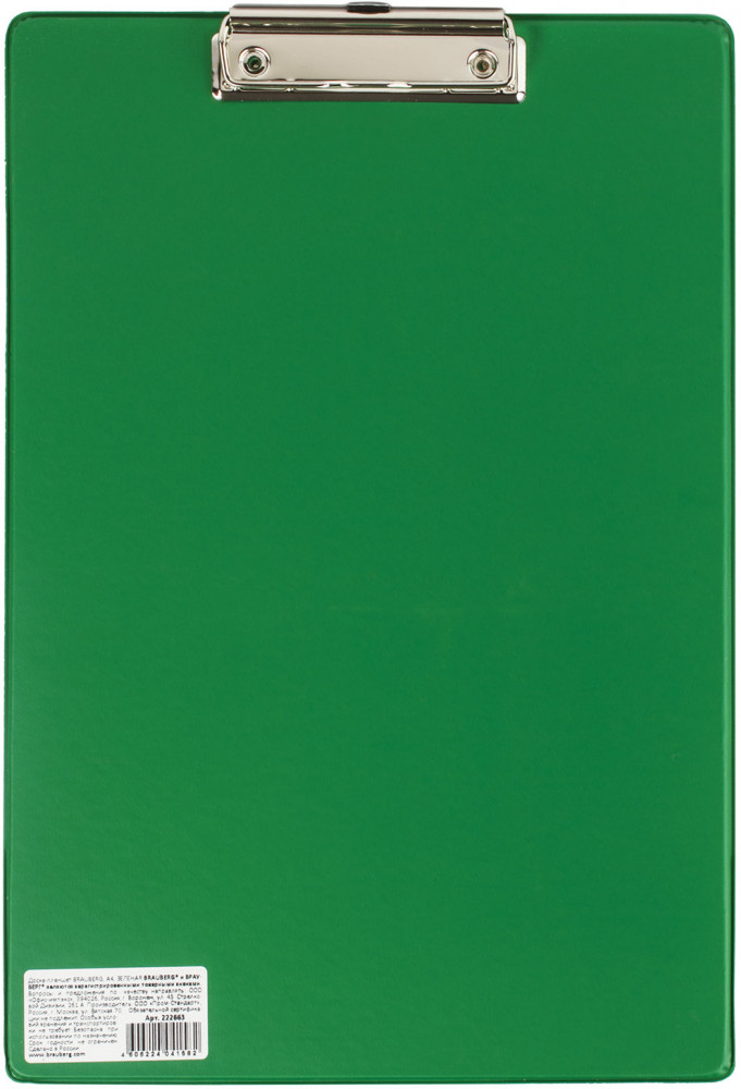 Доска-планшет Brauberg «Comfort» используется для работы со счетами, накладными и другими документами. Незаменима при работе на складе, в магазине, при участии в конференциях, выставках и других публичных выступлениях. Доска-планшет Brauberg «Comfort» — предмет, необходимый каждому, кто работает с бумагами. Организовать деятельность сотрудников, нацеленную на высокий результат, помогут товары нашего интернет-магазина! Доска-планшет формата А4 с верхним прижимом без крышки фиксирует до 90 листов. Изготовлена из плотного картона с покрытием из износоустойчивого ПВХ толщиной 2,3 мм, что позволяет комфортно делать записи на весу, а металлический прижим обеспечивает плотное прилегание документов.