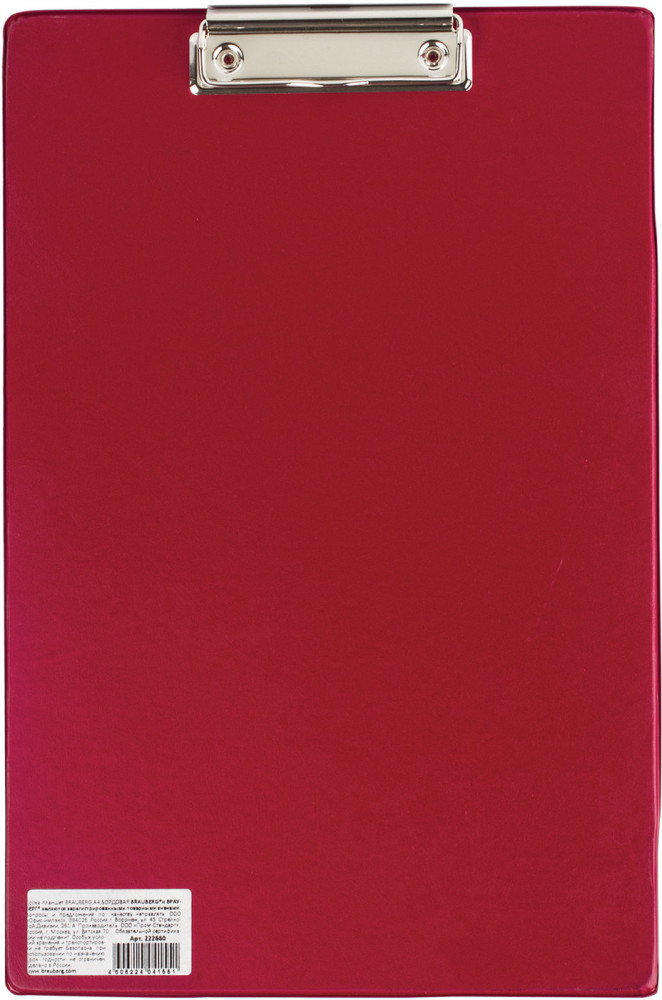 Доска-планшет Brauberg «Comfort» используется для работы со счетами, накладными и другими документами. Незаменима при работе на складе, в магазине, при участии в конференциях, выставках и других публичных выступлениях. Доска-планшет Brauberg «Comfort» — предмет, необходимый каждому, кто работает с бумагами. Организовать деятельность сотрудников, нацеленную на высокий результат, помогут товары нашего интернет-магазина! Доска-планшет формата А4 с верхним прижимом без крышки фиксирует до 90 листов. Изготовлена из плотного картона с покрытием из износоустойчивого ПВХ толщиной 2,3 мм, что позволяет комфортно делать записи на весу, а металлический прижим обеспечивает плотное прилегание документов.