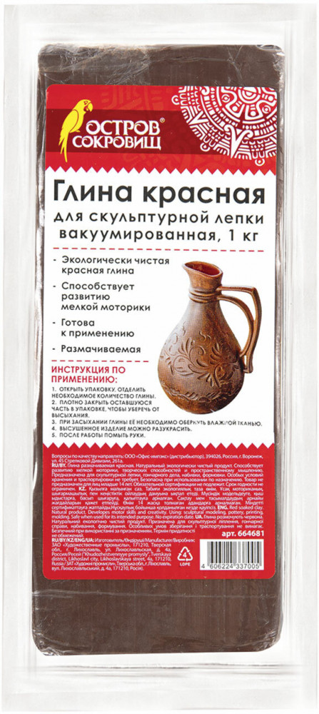 Остров сокровищ Глина для скульптурной лепки вакуумированная, красная-35% +33 быстро сохнет хорошо лепится устойчивость формы