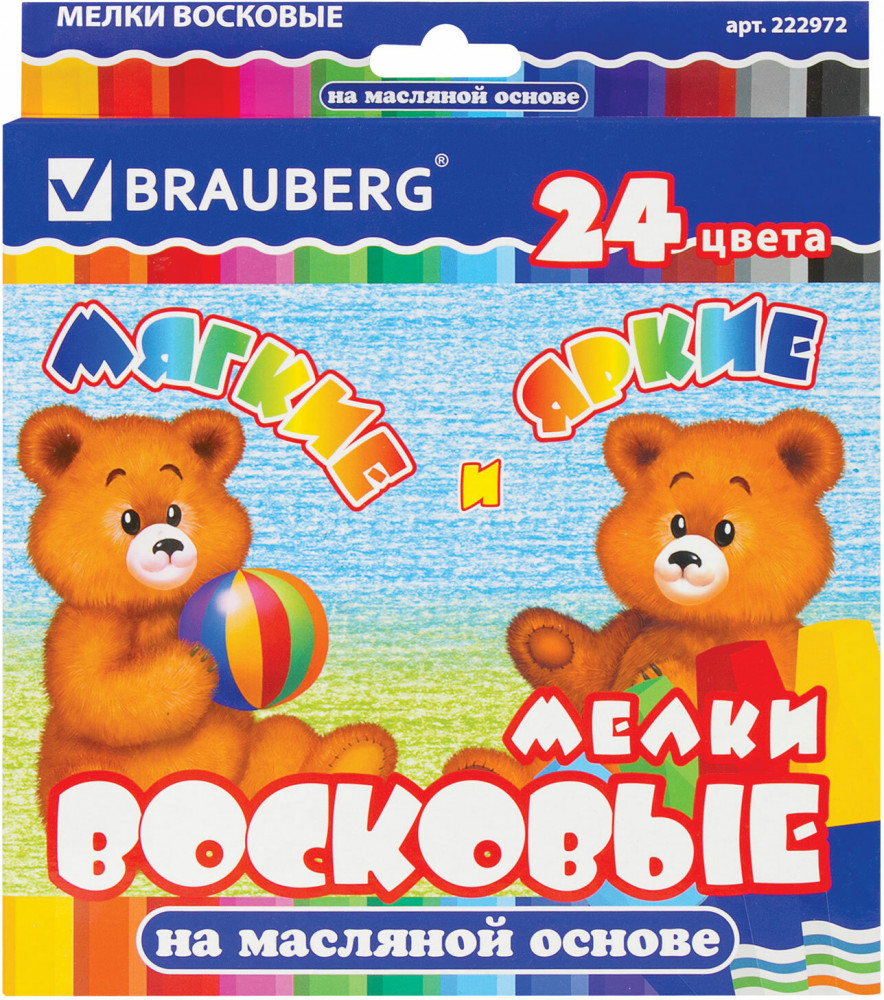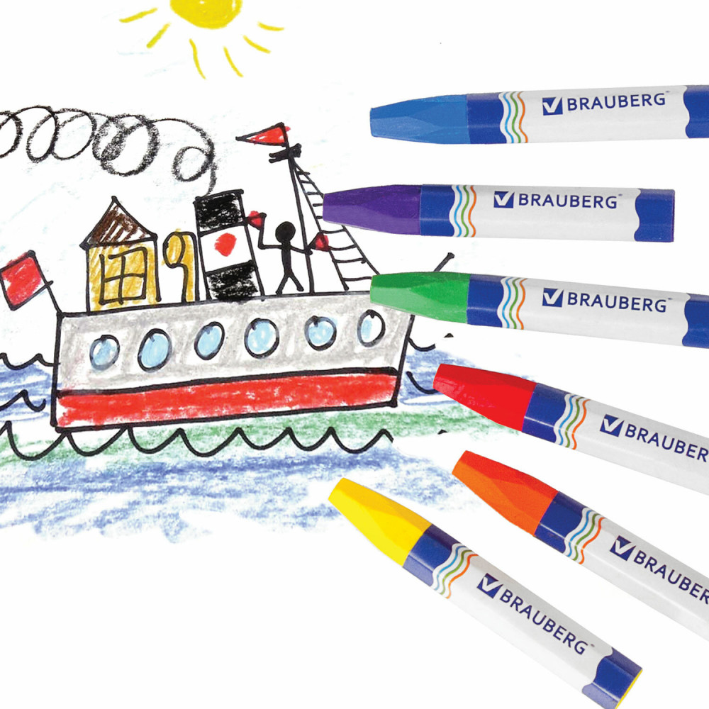 Brauberg Набор мелков восковых-35% +47 удобная ручка насыщенные цвета тонкие линии мягкое рисование не крошатся